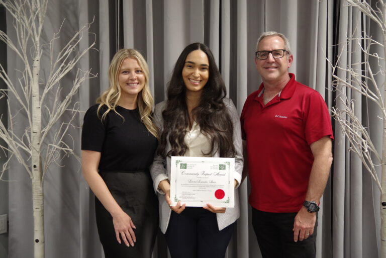 2025 Community Impact Award Recipient, Laena Leandro Starr, with Stacy Van Acker (SLCS) & Michael Oates (SLCS).